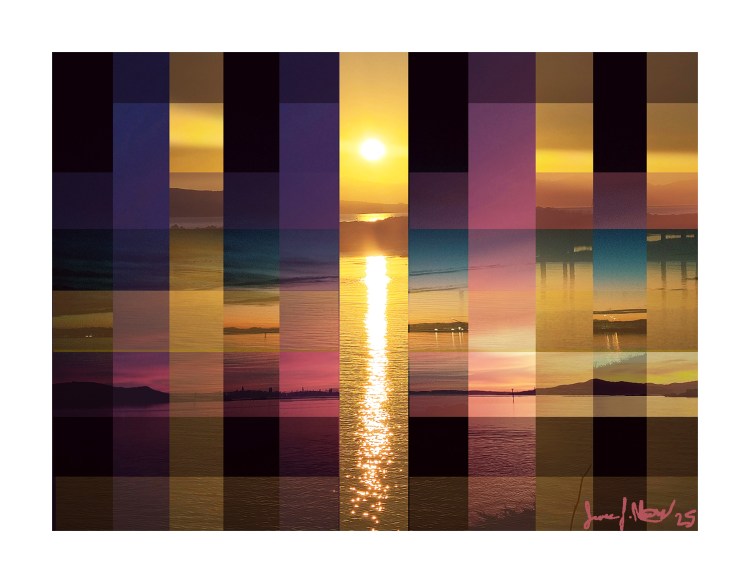 “Quiet Sunsets with warm rays: pierced the eyes, and hugged the heart. An escape? A soft landing? A reflection?” 2025.